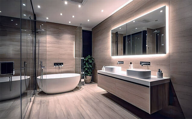Installation of comprehensive bathroom units combining extraction, lighting, and heating functions in one compact system for maximum comfort and efficiency.